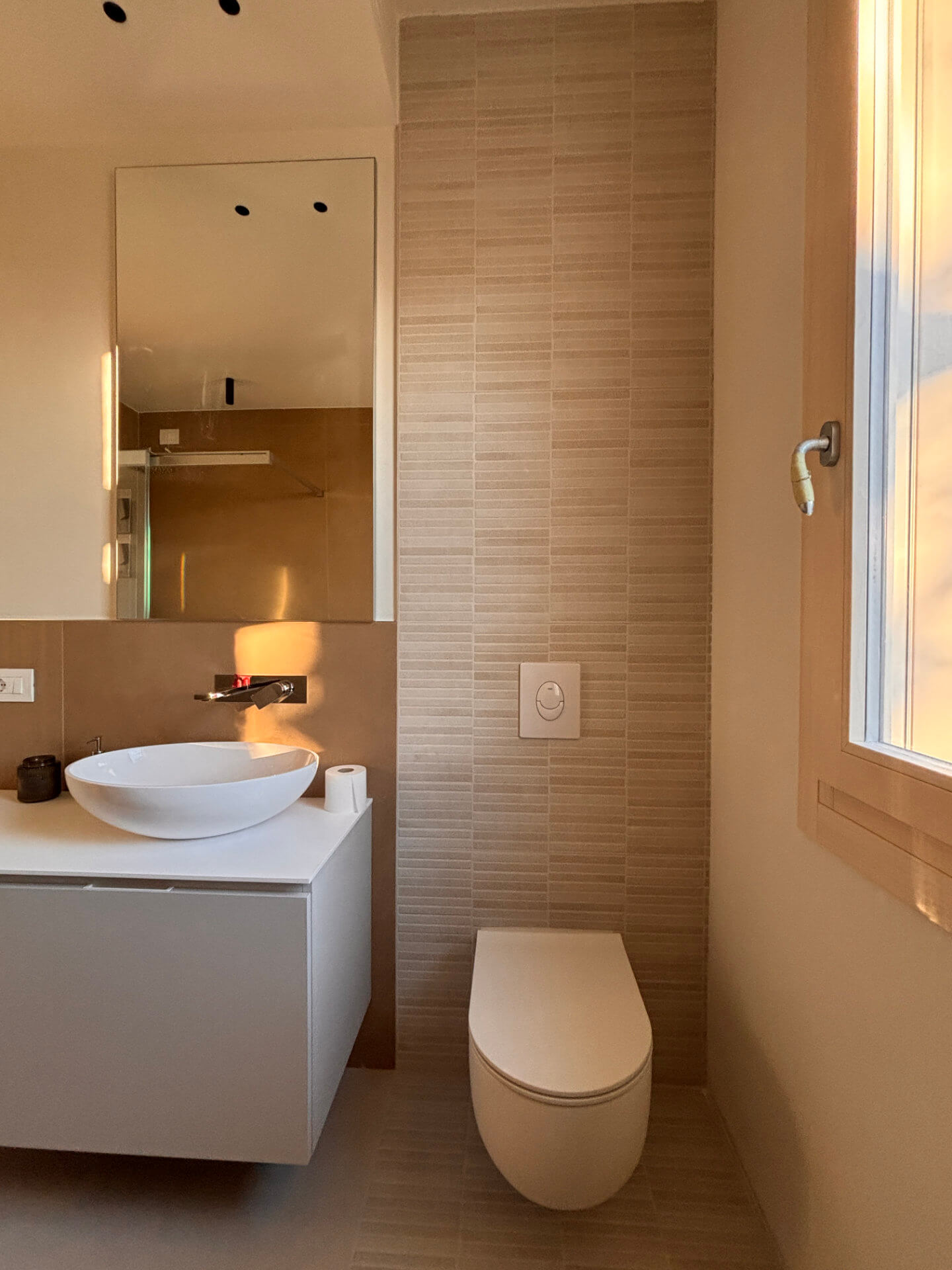 Il risultato è un ambiente bagno armonioso ed elegante, in cui il dialogo tra