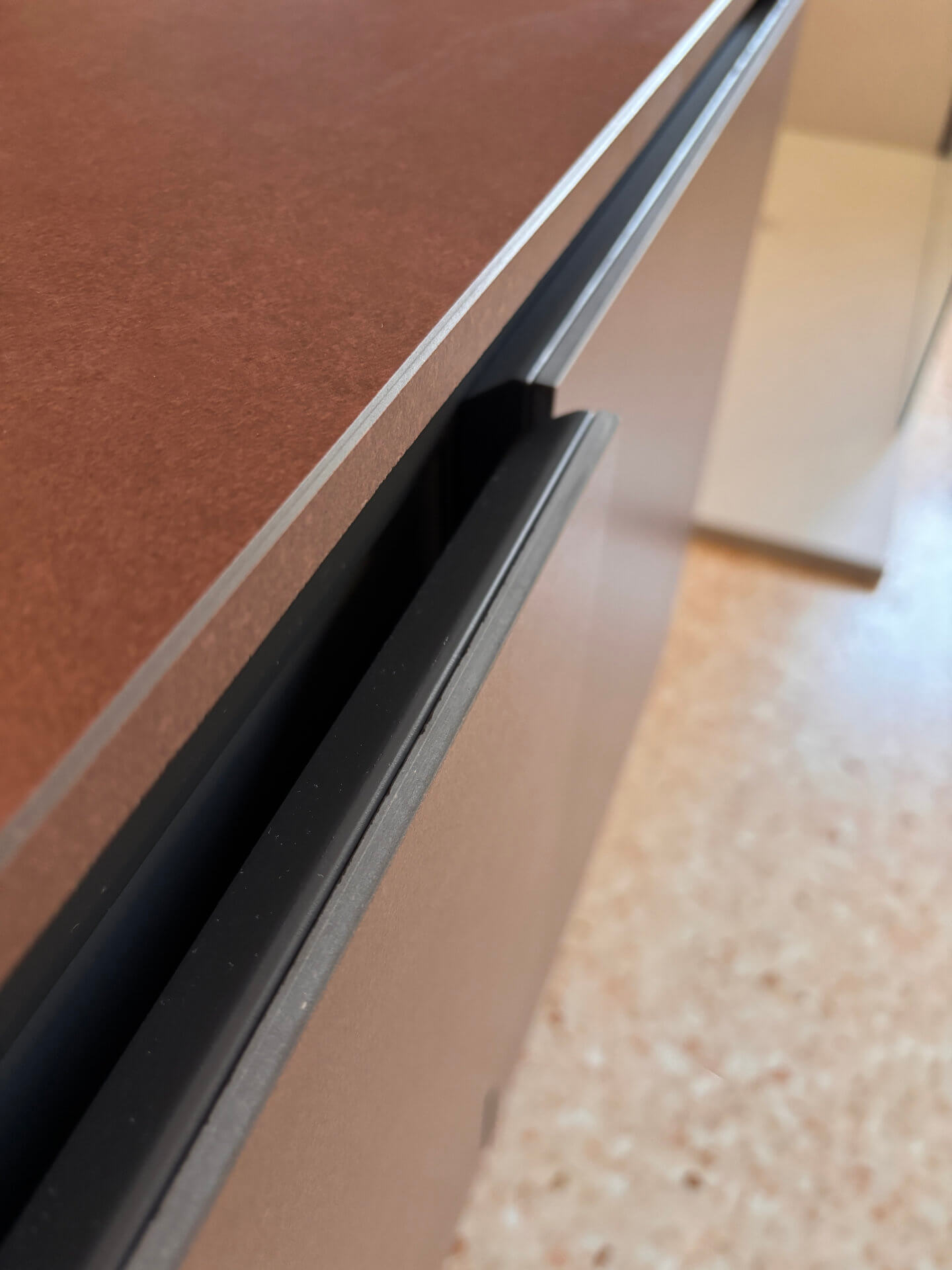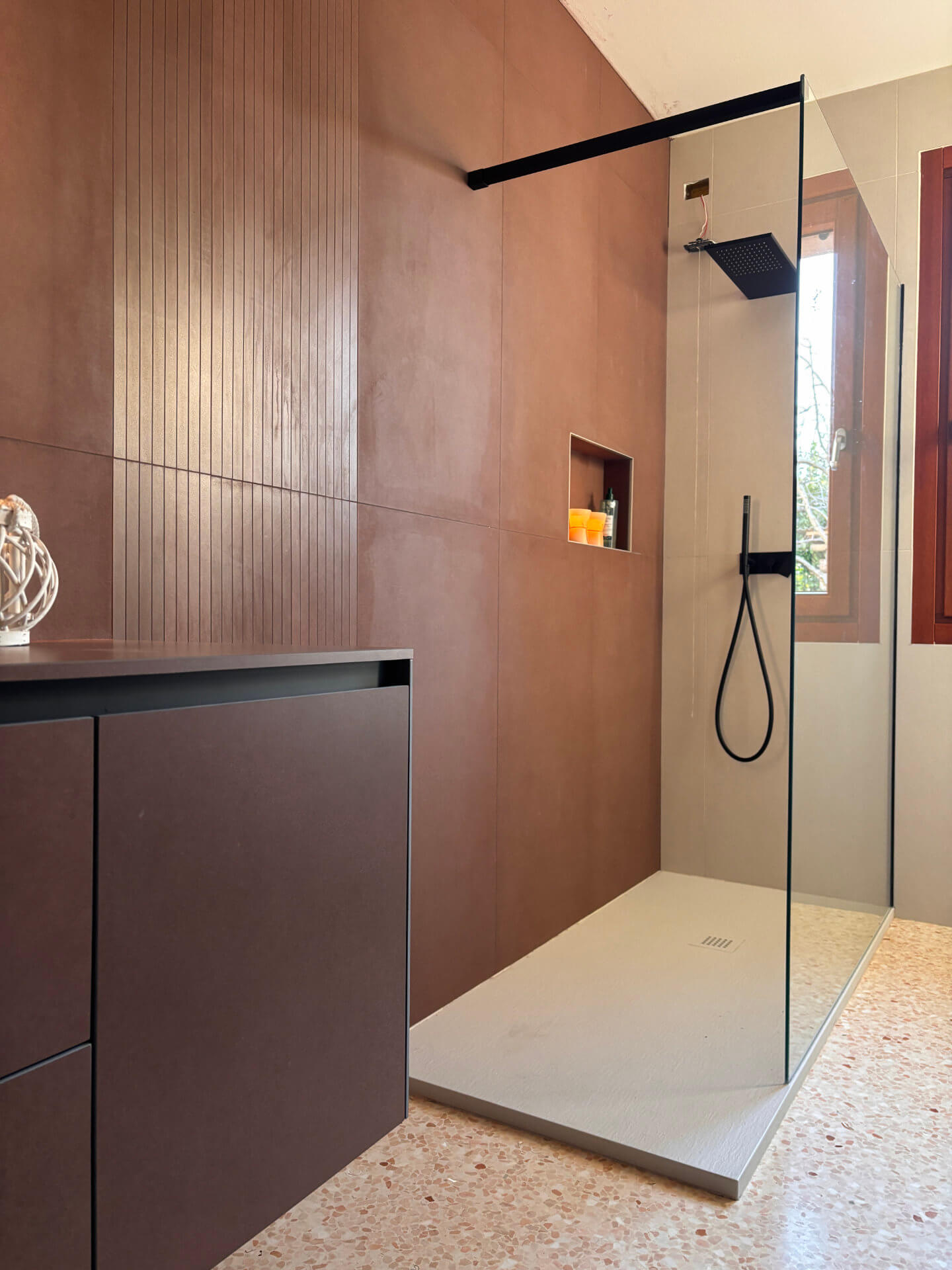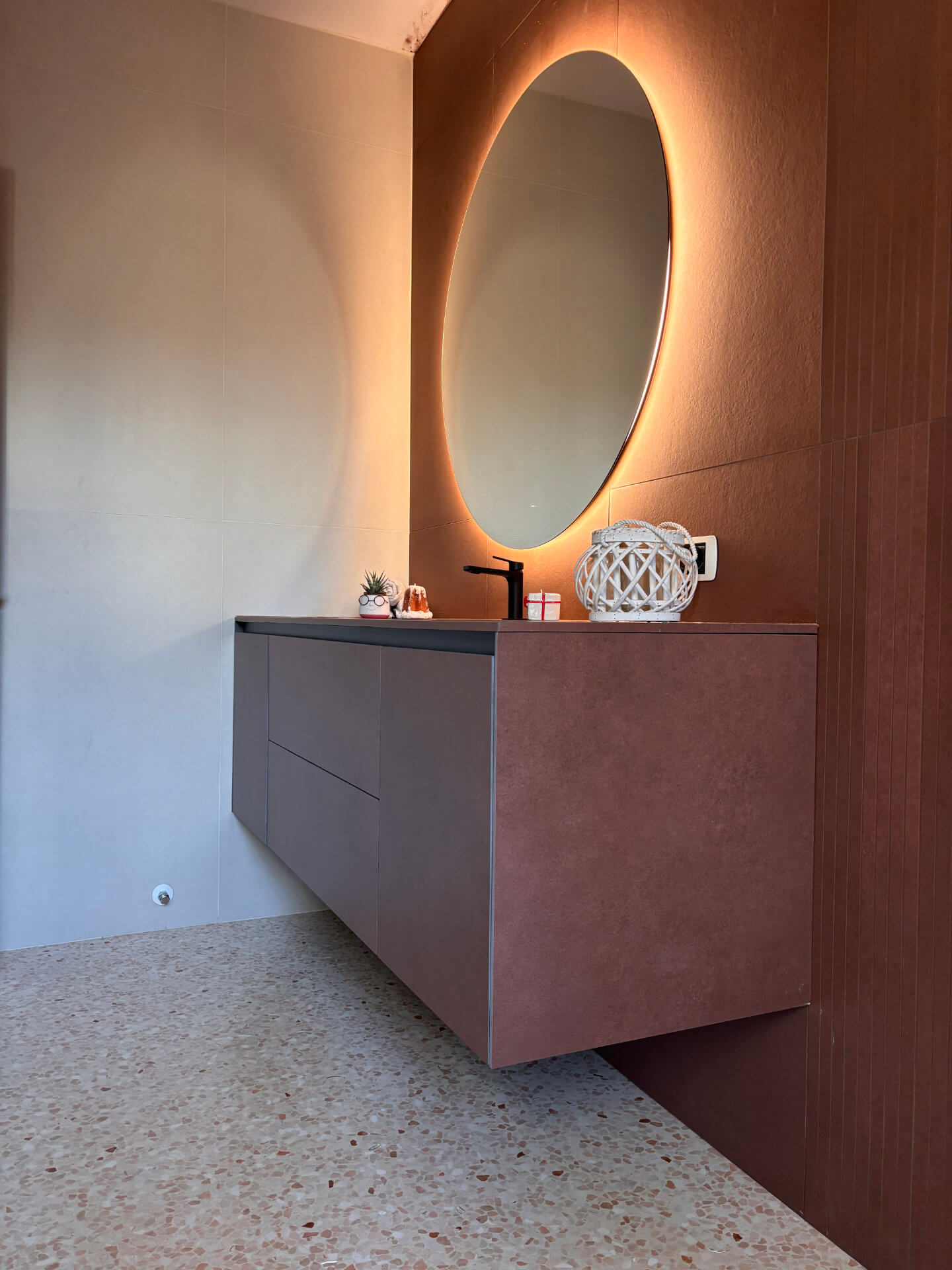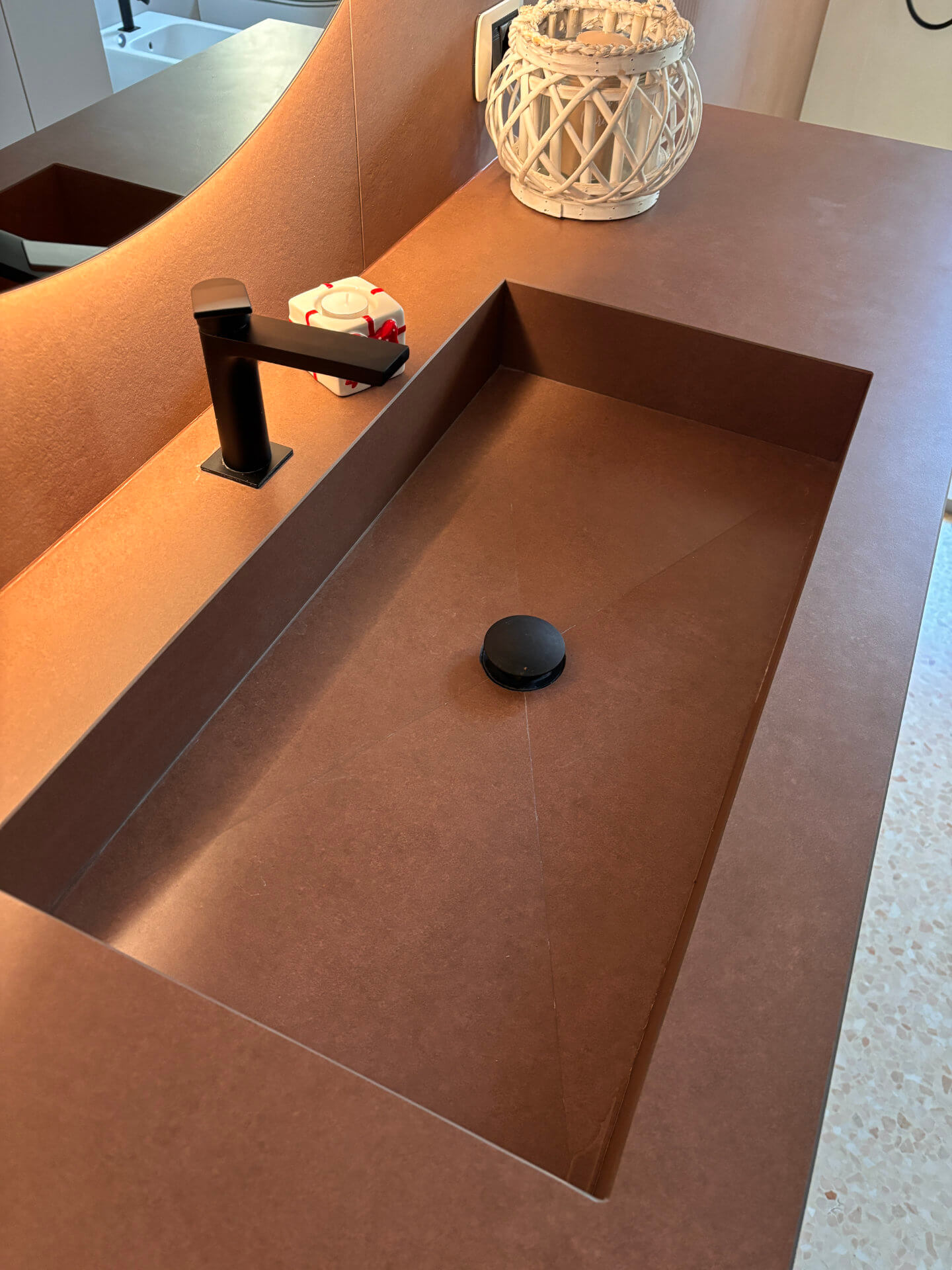 porcellanato effetto resina/metallo nei toni del ruggine, scelte per